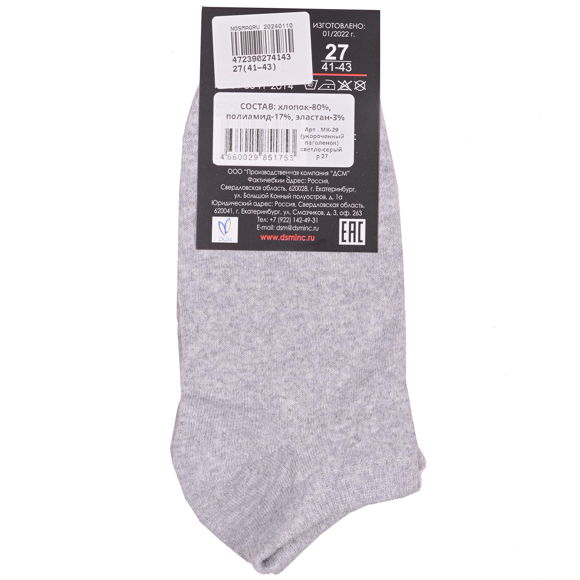Комплект мужских носков из 5 пар, летние или межсезонные, короткие, цвет светло-серый, классические, шов обычный (не бесшовные), принт (рисунок): без рисунков/узоров, однотонный, состав: 80% хлопок, 17% полиамид, 3% эластан, арт. 5-МК-29. Производитель «ООО Производственная компания "ДСМ", Россия» под брендом «Grand line».