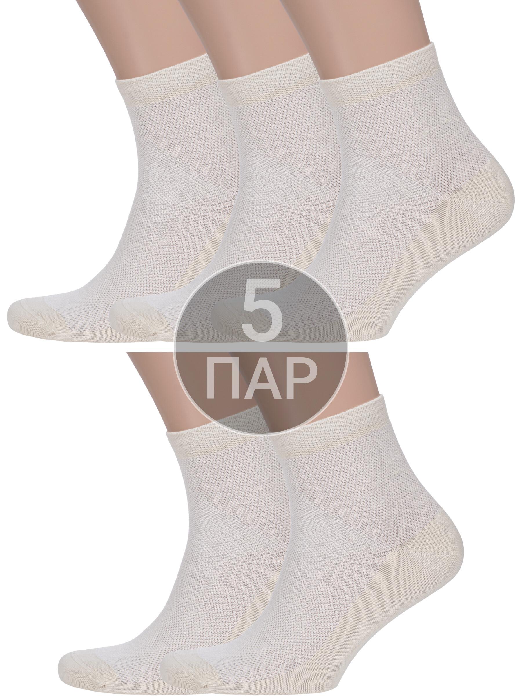 Комплект мужских носков из 5 пар, летние, укороченные, цвет бежевый, в сеточку, шов кеттельный (бесшовная технология), принт (рисунок): однотонный, без рисунков/узоров, состав: 85% хлопок, 15% полиамид, арт. 5-X-1128. Производитель «ХОХ» Россия под брендом «Хох».