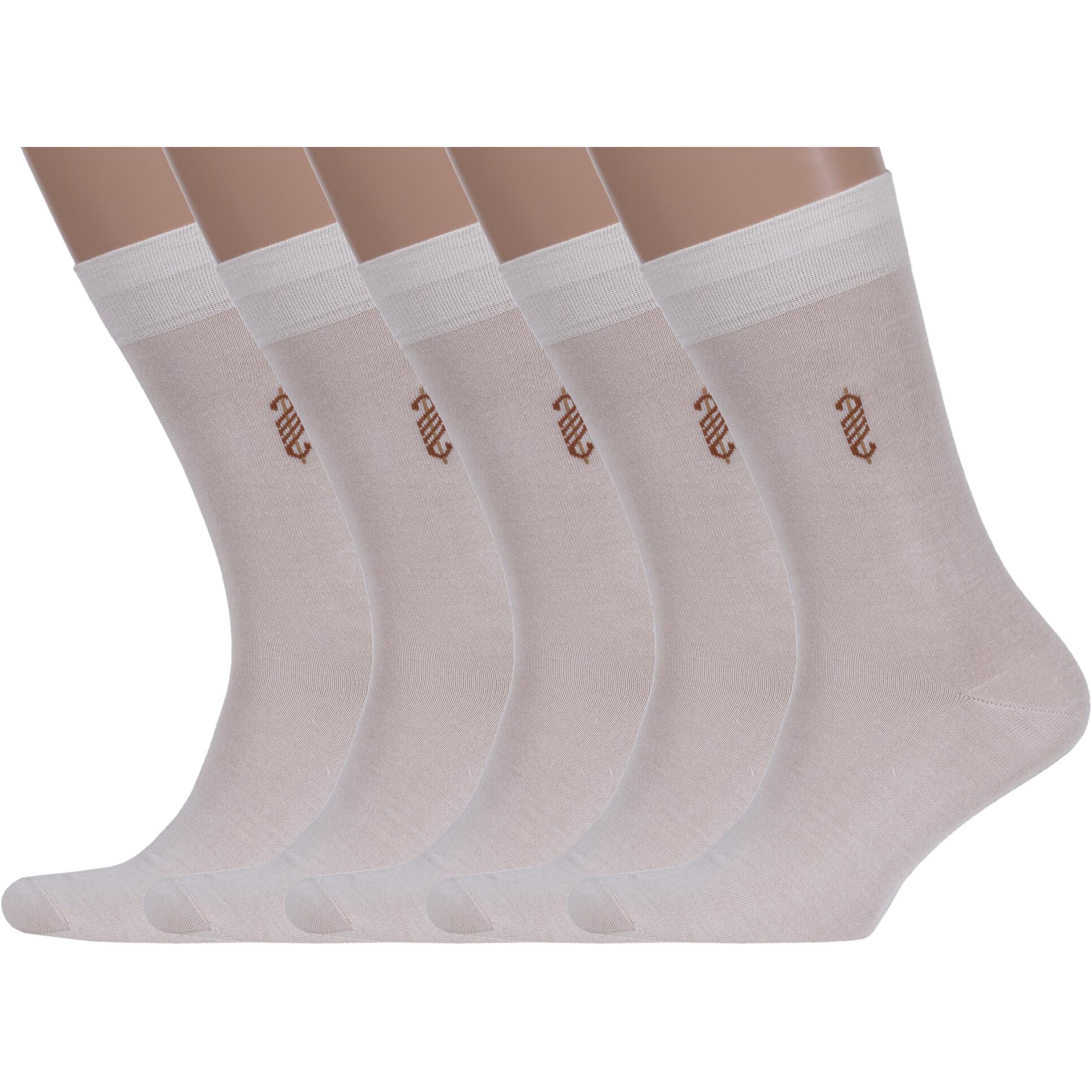 Комплект мужских носков из 5 пар, межсезонные или летние, средней длины, цвет бежевый, классические, возможно бесшовные, принт (рисунок): однотонный, небольшой рисунок, состав: 85% модал, 15% полиамид, арт. 5-X-1117. Производитель «ХОХ» Россия под брендом «Хох».