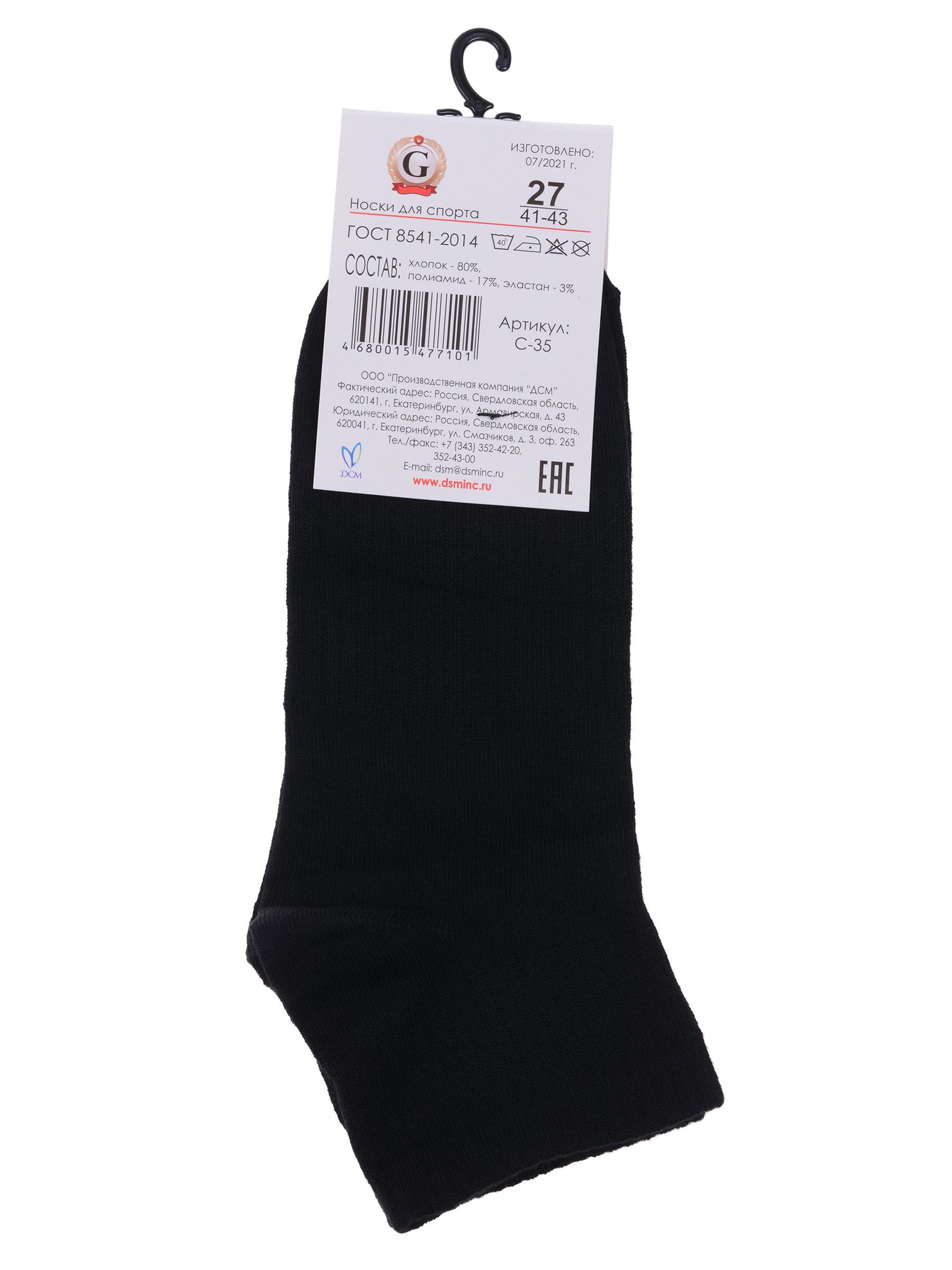 Комплект носков унисекс из 5 пар, круглогодичные, короткие, цвет черный, спортивные, возможно бесшовные, принт (рисунок): без рисунков/узоров, однотонный, состав: 80% хлопок, 17% полиамид, 3% эластан, арт. 5-С-35. Производитель «ООО Производственная компания "ДСМ", Россия» под брендом «Grand line».