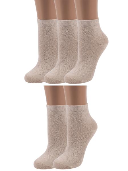 Комплект женских носков из 5 пар, летние или круглогодичные, короткие, цвет бежевый, спортивные, классические, возможно бесшовные, принт (рисунок): однотонный, без рисунков/узоров, состав: 80% бамбук, 18% полиамид, 2% эластан, арт. 5-G-1125. Производитель «ХОХ» Россия под брендом «Хох».