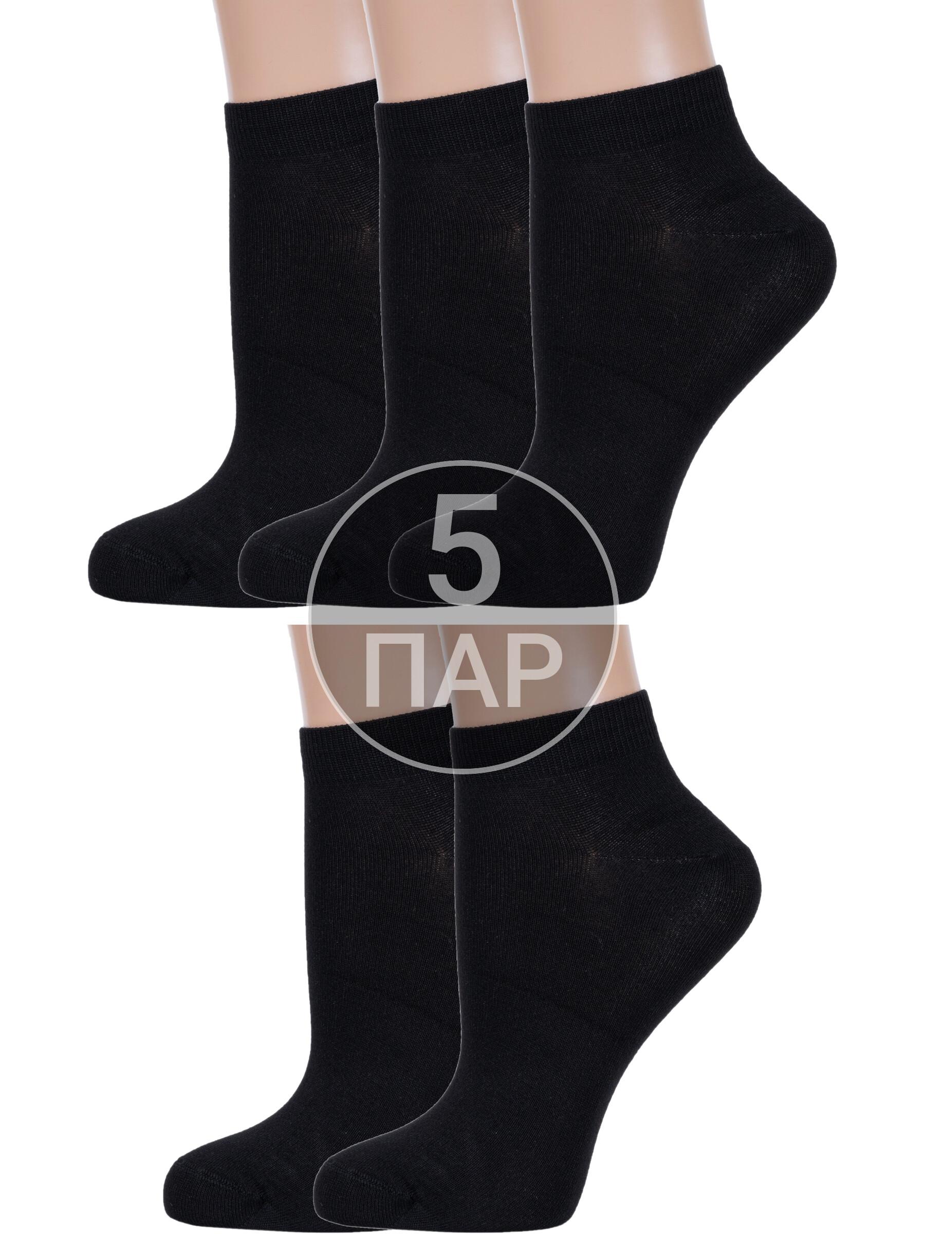 Комплект женских носков из 5 пар, летние или круглогодичные, короткие, цвет черный, спортивные, возможно бесшовные, принт (рисунок): однотонный, без рисунков/узоров, состав: 80% бамбук, 18% полиамид, 2% эластан, арт. 5-G-1125. Производитель «ХОХ» Россия под брендом «Хох».