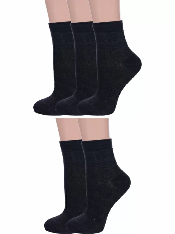 Комплект женских носков из 5 пар, летние, укороченные, цвет черный, в сеточку, ажурные, шов обычный (не бесшовные), принт (рисунок): с узором, кружево (или имитация), состав: 80% хлопок, 18% полиамид, 2% эластан, арт. 5-С117. Производитель «ООО Альтаир, г. Орск, Оренбургская обл, Россия» под брендом «Альтаир».