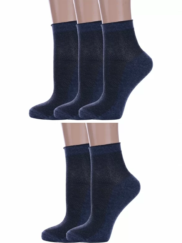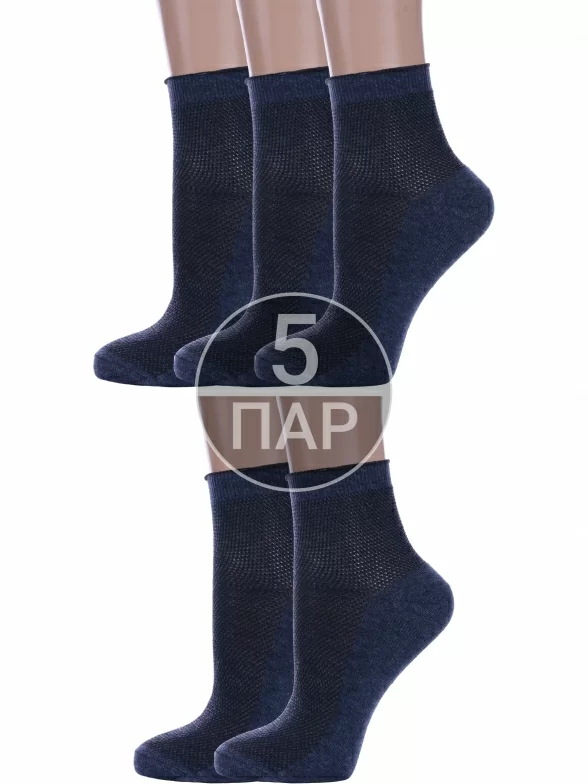 Комплект женских носков из 5 пар, летние, укороченные, цвет джинс, в сеточку, шов обычный (не бесшовные), принт (рисунок): без рисунков/узоров, состав: 75% хлопок, 25% полиамид, арт. 5-А33. Производитель «ООО Альтаир, г. Орск, Оренбургская обл, Россия» под брендом «Альтаир».