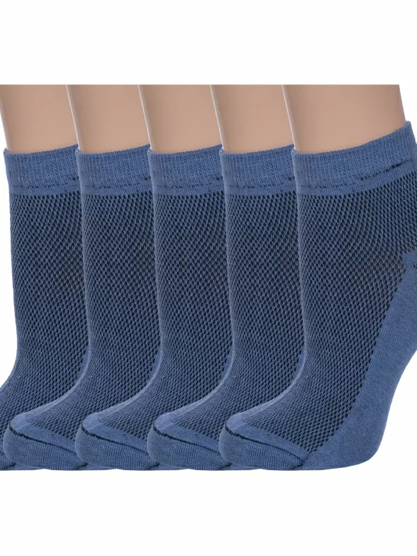 Комплект женских носков из 5 пар, летние, короткие, цвет джинс, в сеточку, состав: 80% хлопок, 18% полиамид, 2% эластан, фабричный артикул 5-С82. Производитель «ООО Альтаир, г. Орск, Оренбургская обл, Россия» под брендом «Альтаир».