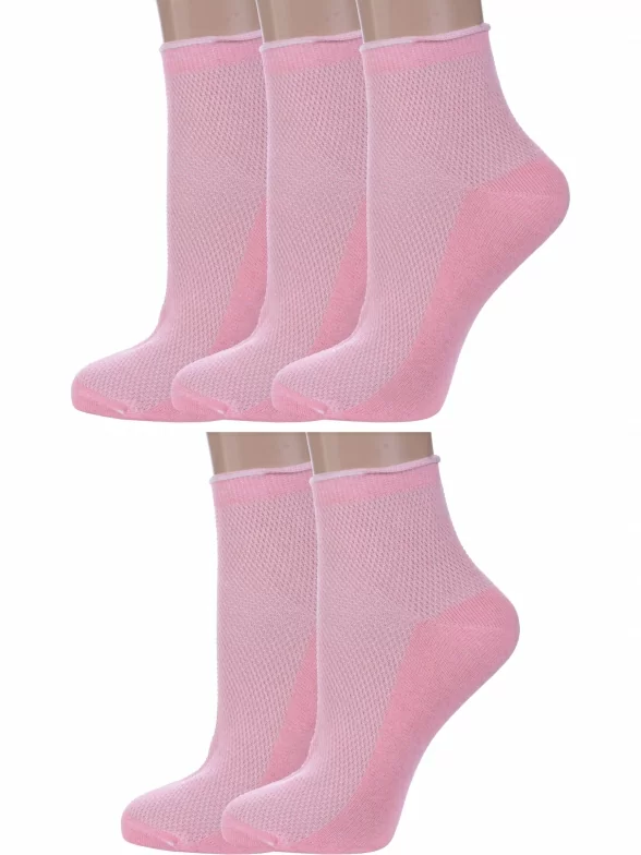 Комплект женских носков из 5 пар, летние, укороченные, цвет розовый, в сеточку, шов обычный (не бесшовные), принт (рисунок): без рисунков/узоров, состав: 75% хлопок, 25% полиамид, арт. 5-А33. Производитель «ООО Альтаир, г. Орск, Оренбургская обл, Россия» под брендом «Альтаир».