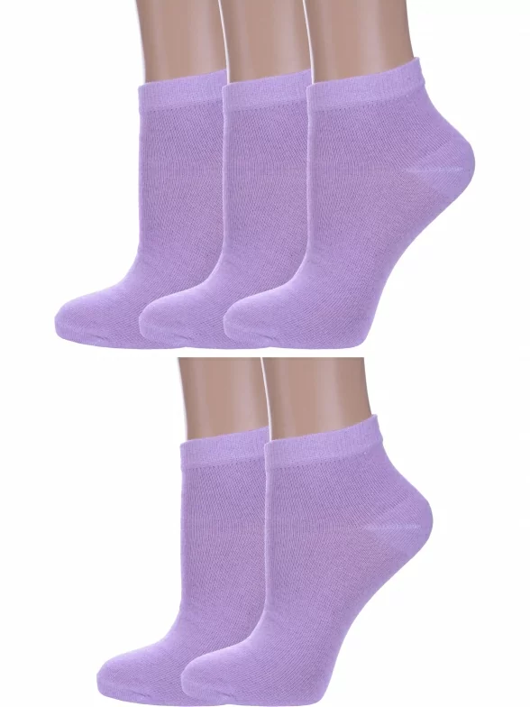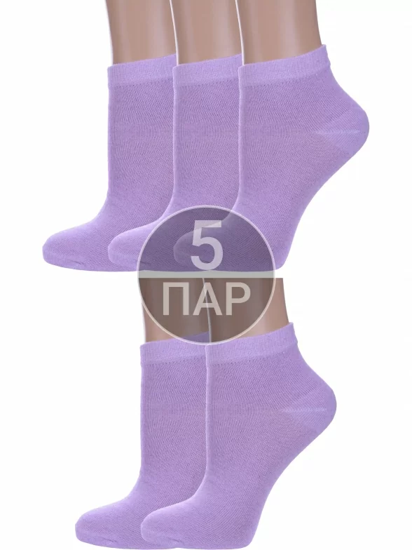 Комплект женских носков из 5 пар, летние, короткие, цвет сиреневый, классические, шов обычный (не бесшовные), принт (рисунок): без рисунков/узоров, состав: 75% хлопок, 23% полиамид, 2% эластан, арт. 5-А61. Производитель «ООО Альтаир, г. Орск, Оренбургская обл, Россия» под брендом «Альтаир».