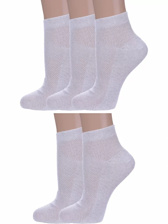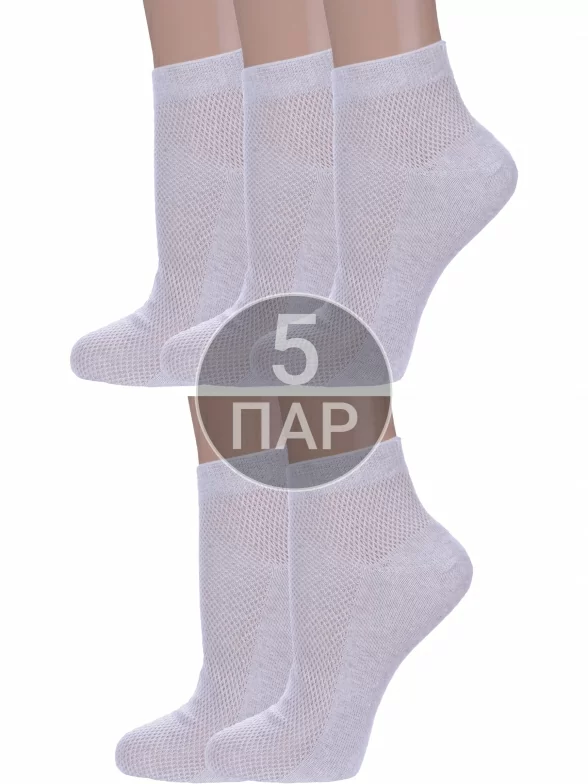 Комплект женских носков из 5 пар, летние, укороченные, цвет светло-серый, в сеточку, шов обычный (не бесшовные), принт (рисунок): без рисунков/узоров, состав: 75% хлопок, 25% полиамид, арт. 5-А33. Производитель «ООО Альтаир, г. Орск, Оренбургская обл, Россия» под брендом «Альтаир».
