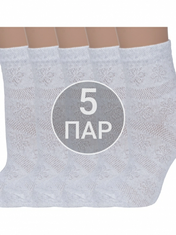 Комплект женских носков из 5 пар, летние или круглогодичные, укороченные, цвет светло-серый, повседневные, в сеточку, шов обычный (не бесшовные), принт (рисунок): цветы / растения, кружево (или имитация), с узором, состав: 80% хлопок, 18% полиамид, 2% эластан, арт. 5-С117. Производитель «ООО Альтаир, г. Орск, Оренбургская обл, Россия» под брендом «Альтаир».