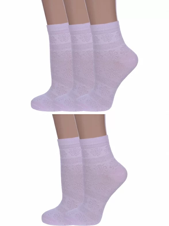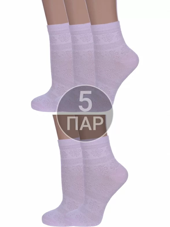 Комплект женских носков из 5 пар, летние, укороченные, цвет светло-сиреневый, ажурные, в сеточку, шов обычный (не бесшовные), принт (рисунок): с узором, кружево (или имитация), состав: 80% хлопок, 18% полиамид, 2% эластан, арт. 5-С117. Производитель «ООО Альтаир, г. Орск, Оренбургская обл, Россия» под брендом «Альтаир».