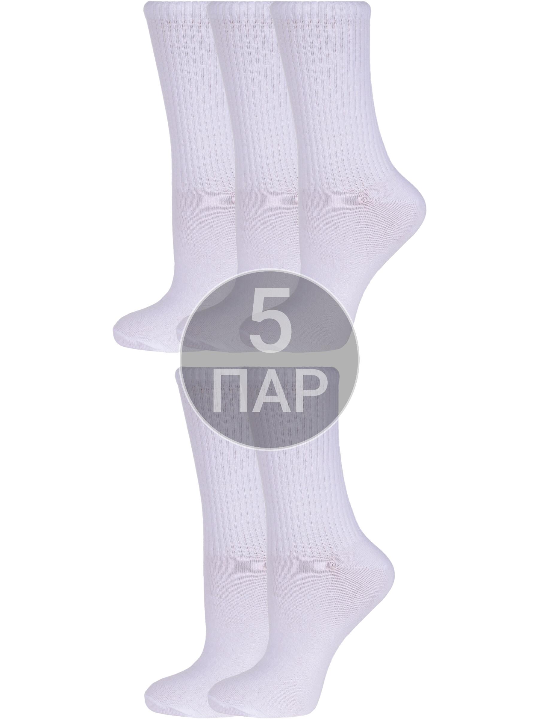 Комплект женских носков из 5 пар, летние или круглогодичные, средней длины, цвет "белый", спортивные, классические, шов обычный (не бесшовные), принт (рисунок): в рубчик, однотонный, без рисунков/узоров, состав: 90% хлопок, 7% полиамид, 3% эластан, арт. 5-L34ж. Производитель «ЧЕЛНЫ ТЕКСТИЛЬ» Россия под брендом «Челны текстиль».