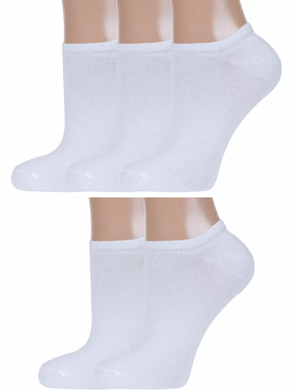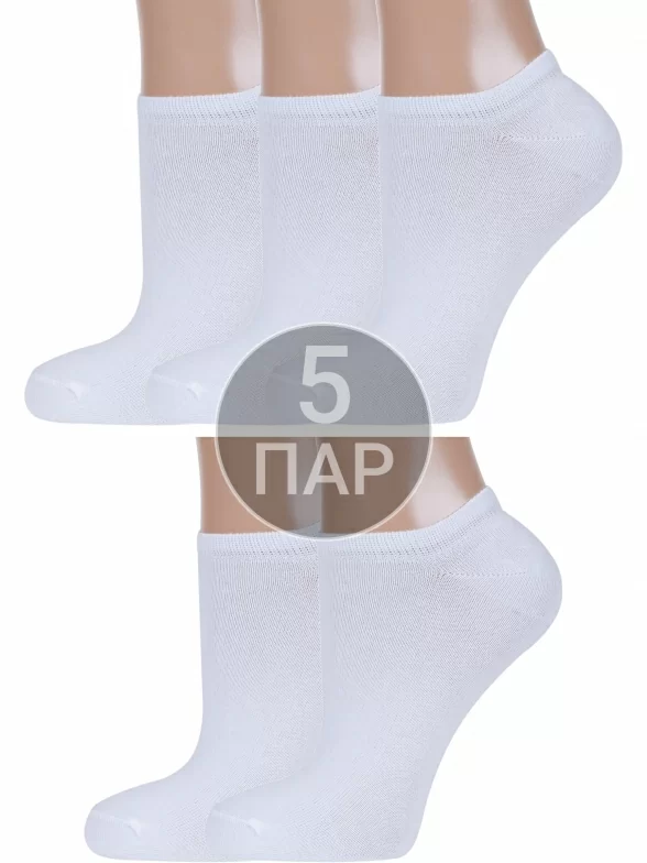 Комплект женских носков из 5 пар, летние, ультракороткие, цвет белый, спортивные, классические, возможно бесшовные, принт (рисунок): однотонный, без рисунков/узоров, состав: 80% хлопок, 15% полиамид, 5% эластан или 88% хлопок, 10% полиамид, 2% эластан, арт. 5-G-3R7. Производитель «ХОХ» Россия под брендом «Хох».