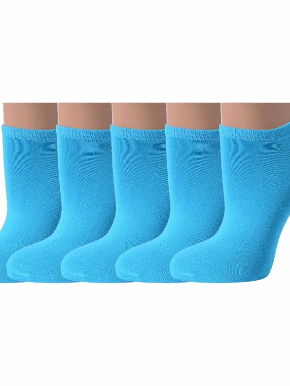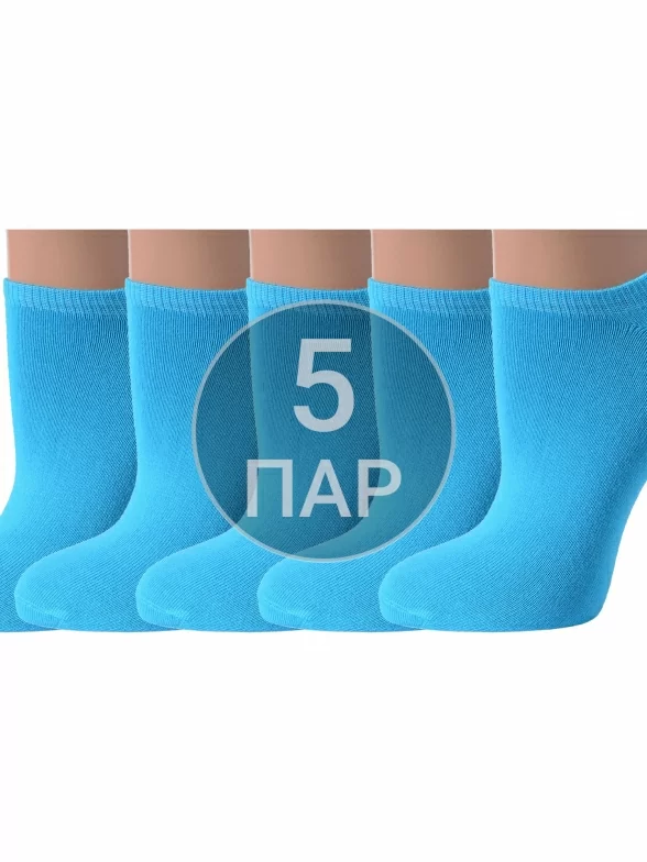 Комплект женских носков из 5 пар, летние, ультракороткие, цвет бирюзовый, классические, возможно бесшовные, принт (рисунок): однотонный, без рисунков/узоров, состав: 80% хлопок, 15% полиамид, 5% эластан или 88% хлопок, 10% полиамид, 2% эластан, арт. 5-G-3R7. Производитель «ХОХ» Россия под брендом «Хох».