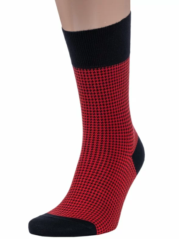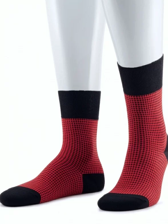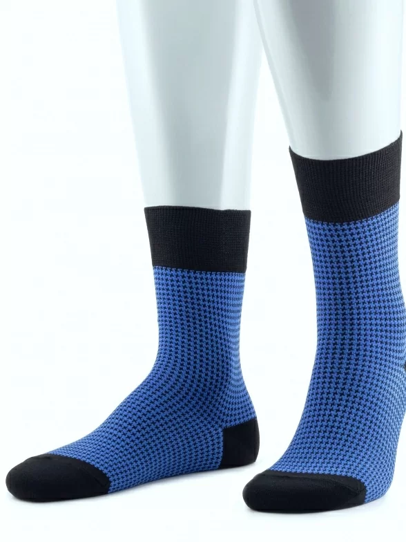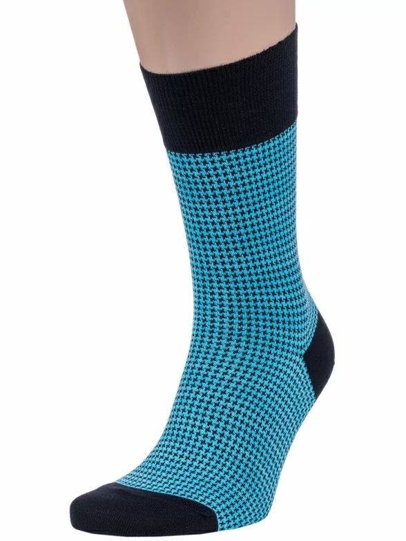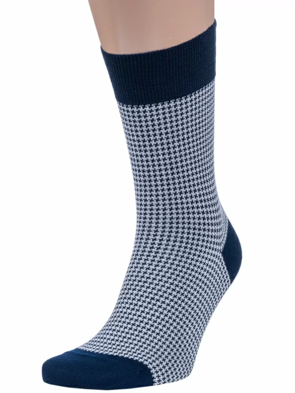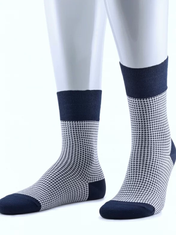 Модель средней длины с плоским малоощутимым швом на мыске и с одинарным бортом (манжетом резинки); оформлена узором в гусиную лапку.
