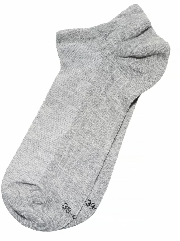 Комплект из трёх пар носков для спорта серого цвета. Носки спортивного фасона с сеточкой по всему подъему стопы, отлично подходящие под низкую летнюю обувь, например полукеды или кроссовки.
