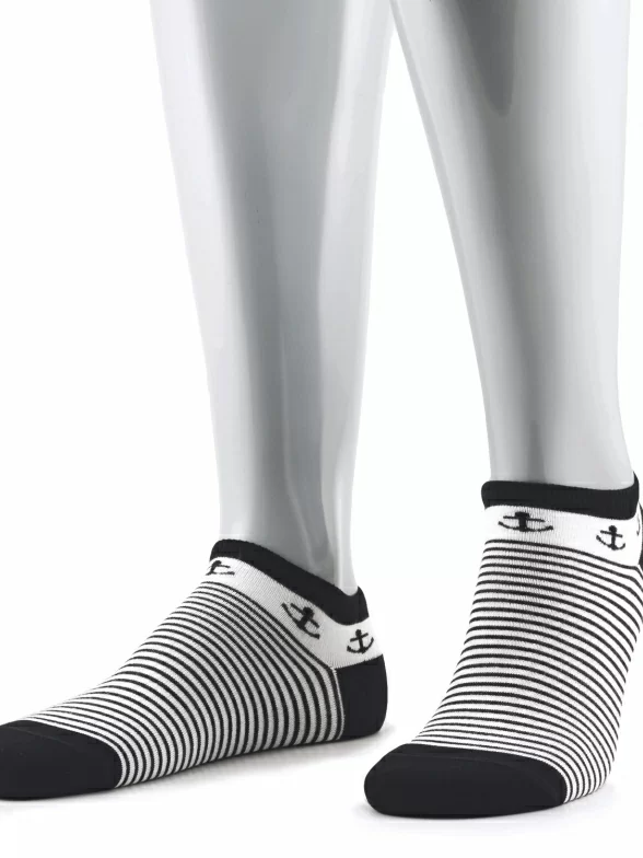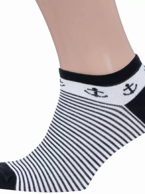 Короткая модель в полоску с плоским малоощутимым швом на мыске и с двойным бортом (манжетом резинки).