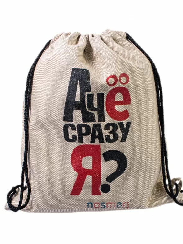 Отличный мешок для кого угодно! Этот принт порадует не только охотников и рыболовов, ведь он подойдет каждому, вне зависимости от возраста, пола и хобби. Яркий принт с надписью “А чё сразу ?” обязательно привлечет внимание и вызовет искренние улыбки. Сам мешок изготовлен из экологичных материалов – хлопка и льна. Он очень удобный и вместительный. Мешочек затягивается на завязки, которые образуют лямки, поэтому его можно использовать как мини-рюкзак. Такой аксессуар будет сам по себе хорош в качестве подарка, а в качестве упаковки он и вовсе вызовет вдвое большую радость от любого поздравления!