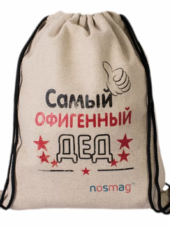 Льняной мешок с принтом, Л010, "Самый офигенный дед"
