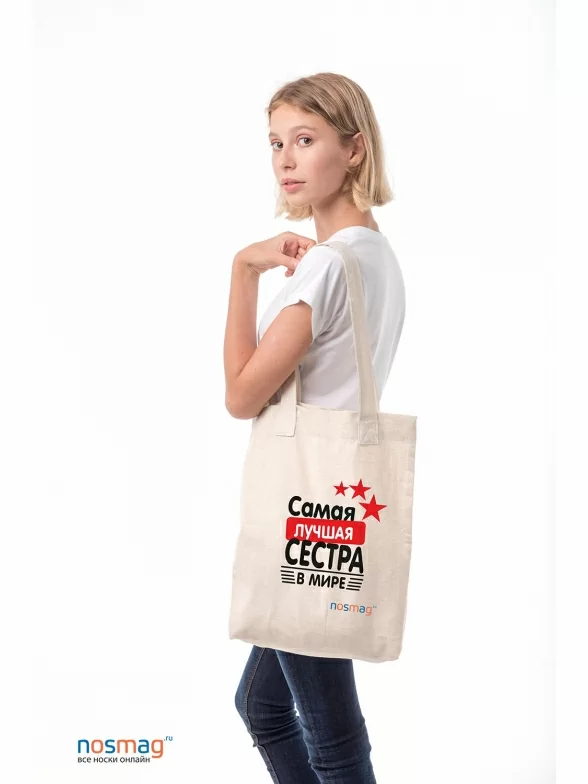 Льняная сумка с рисунком Самая лучшая сестра, 1СУМ, Самая лучшая сестра