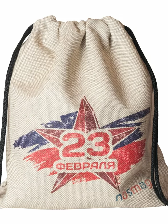Льняной мешок с принтом, Л045, "С 23 февраля"