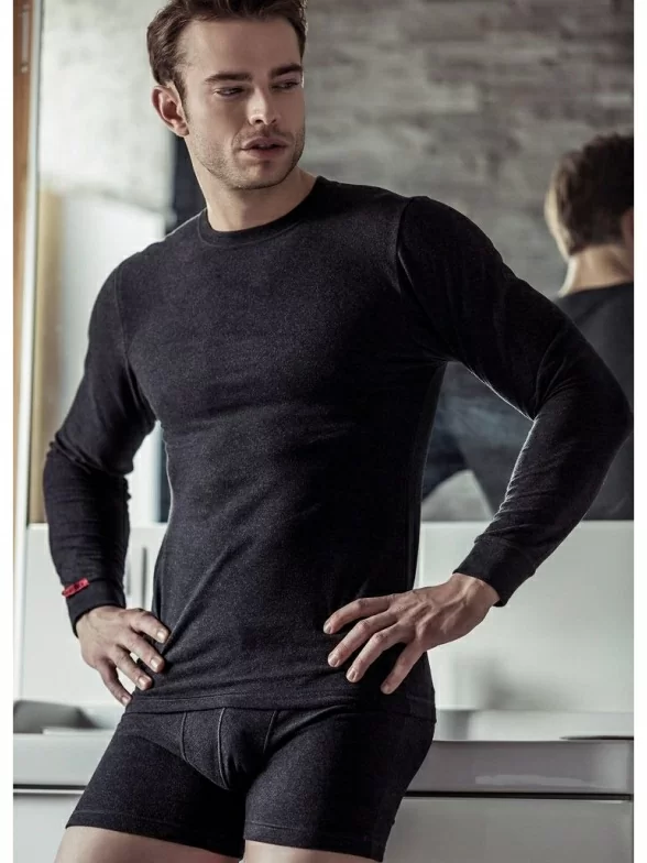 Высококачественный мужской термолонгслив с круглым вырезом горловины, на 95% сделанный из натурального хлопка. Рукава дополнены плотными манжетами. Модель хорошо подходит в качестве нижнего слоя термоодежды.