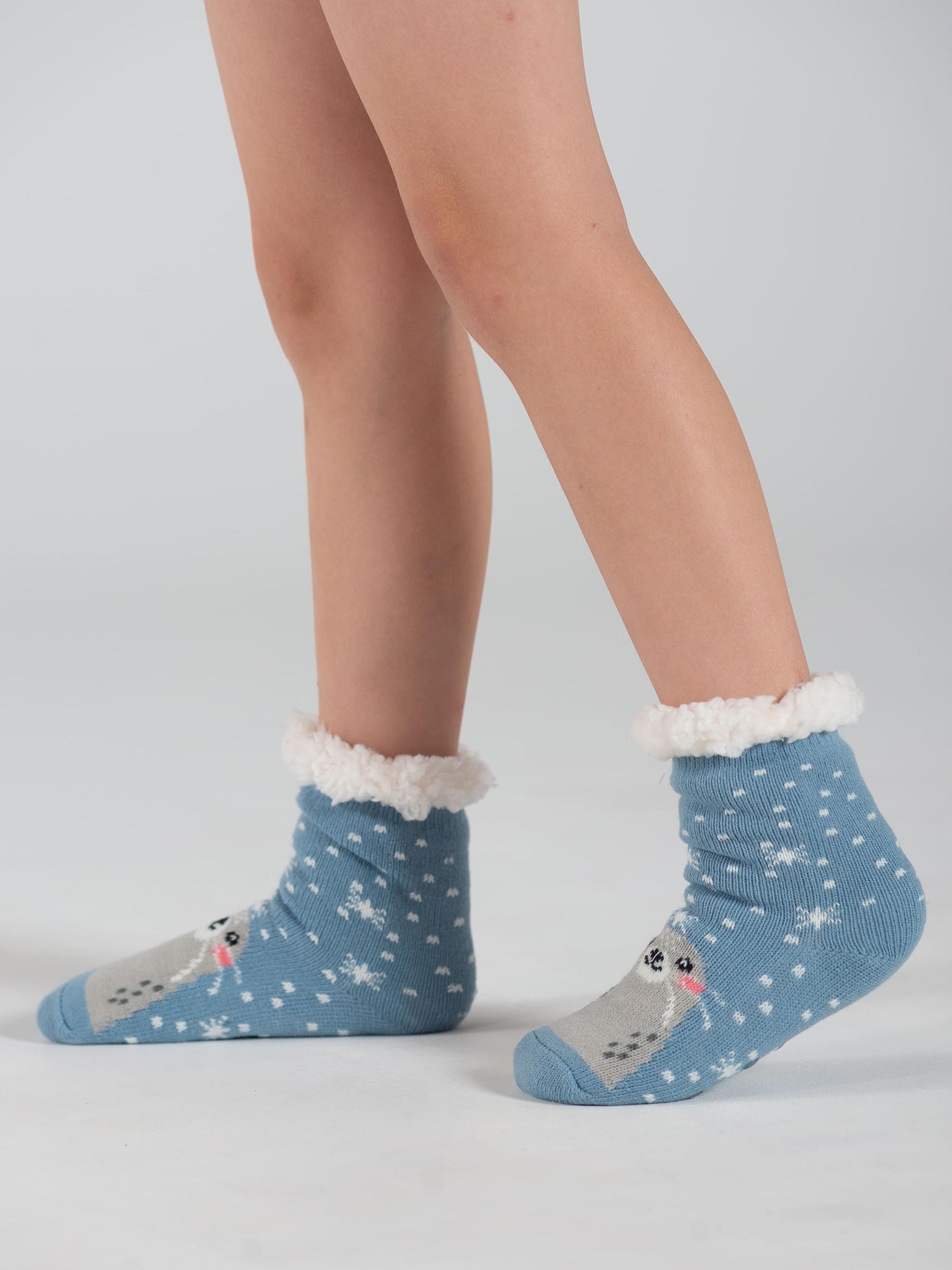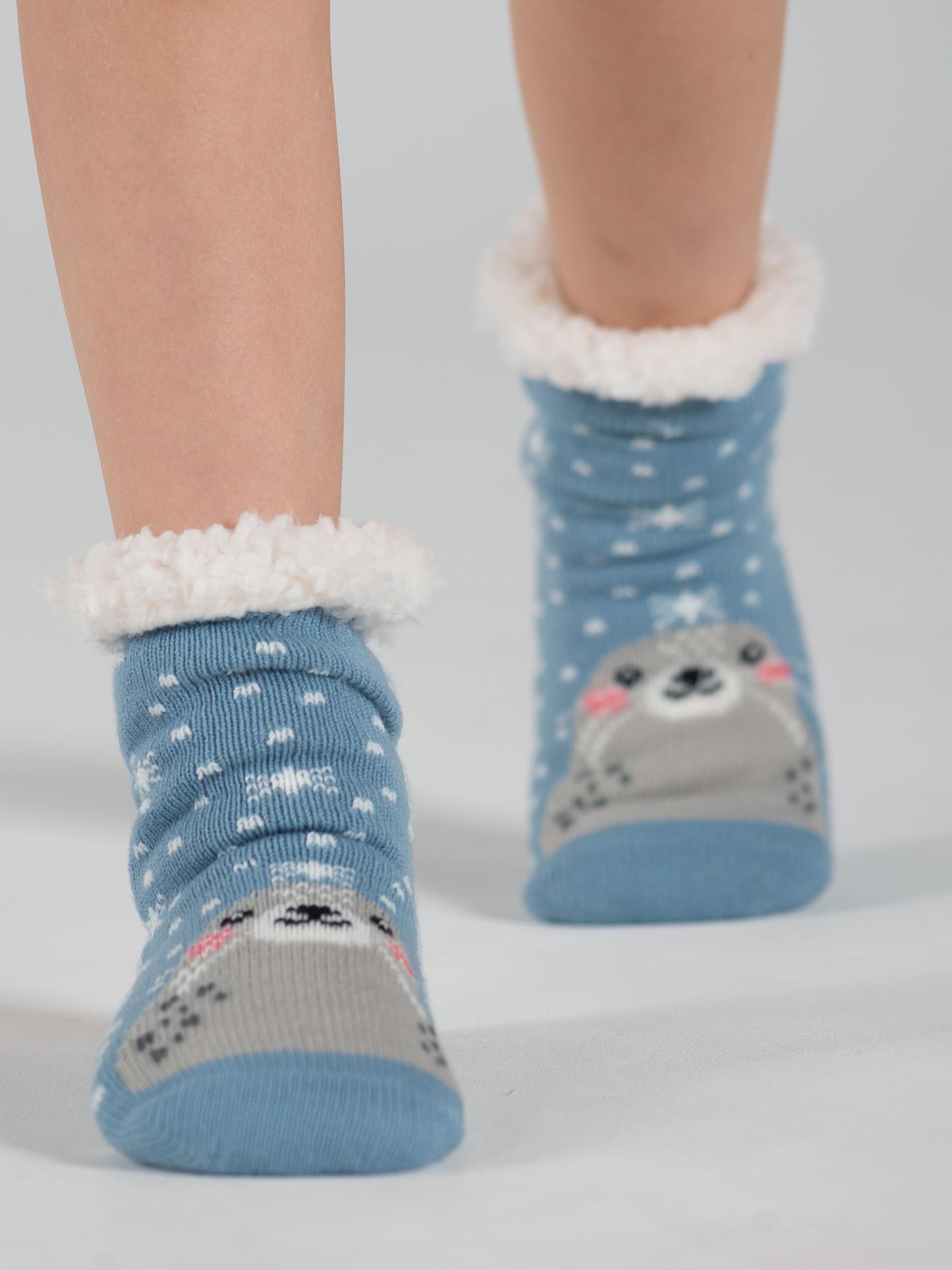 Зимние или межсезонные средней длины детские носки, цвет голубой, с нескользящей стопой, махровые, шов обычный (не бесшовные), принт (рисунок): животные, арт. PK547. Производитель «Oemen» Китай .