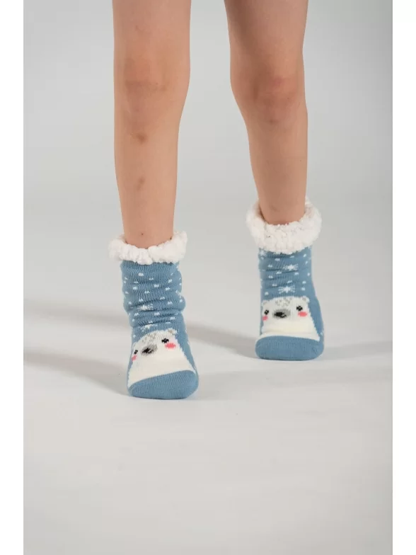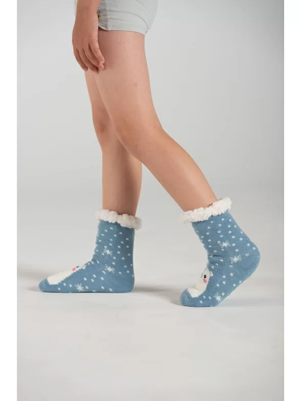 Межсезонные или зимние средней длины детские носки, цвет голубой, с нескользящей стопой, махровые, шов обычный (не бесшовные), принт (рисунок): животные, состав: 97% хлопок, 3% полиуретан, арт. PK549. Производитель «Oemen» Китай .