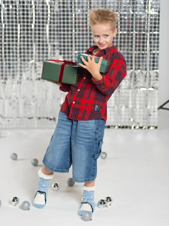 Детские антискользящие махровые носки Oemen, PK550, ГОЛУБЫЕ