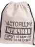 Льняной мешок с принтом, Л053, "Настоящий мужчина на дороге не валяется, а валяется на диване"