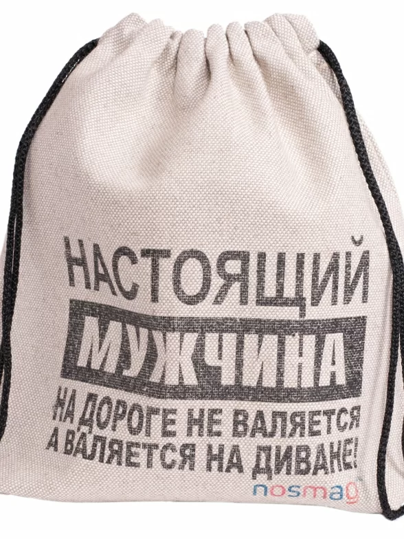 Правильно! Мужчина, который валяется на дороге – скорее всего делает это далеко не из-за убеждений в трезвом образе жизни. Порадуйте своего защитника подарком в столь оригинальной упаковке. Этот качественный и удобный мешочек обязательно порадует и подчеркнет приятные впечатления от любого презента, более того – сам станет полезной в хозяйстве вещью. В нем можно комфортно носить что угодно или хранить всякую мелочь дома. Мешок сделан из хлопка и льна, а принт нанесен современным технологичным способом и долго будет радовать владельца такого аксессуара.