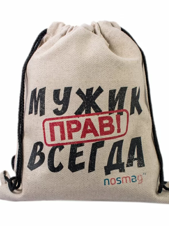 Льняной мешок с принтом, Л051, "Мужик всегда прав"