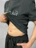 Модель прямого кроя с коротким рукавом и круглым воротом; сбоку изделия имеется бирка с логотипом бренда. Дополнена оригинальной надписью "Делай".