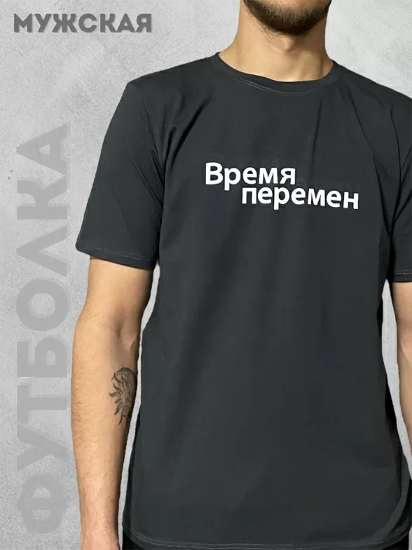 Мужская футболка Рина+, М-302, "ВРЕМЯ ПЕРЕМЕН"