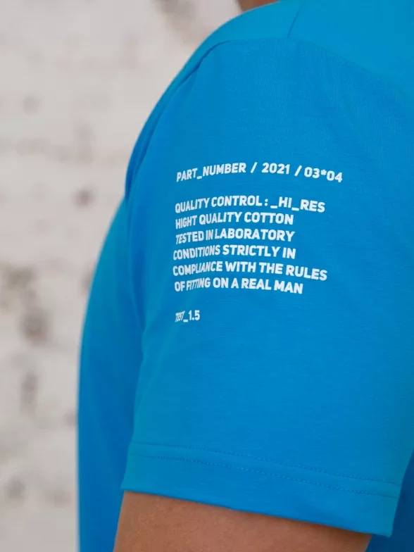 Футболка голубого цвета арт. TF21_03 поставляется в прозрачном фирменном пакете.