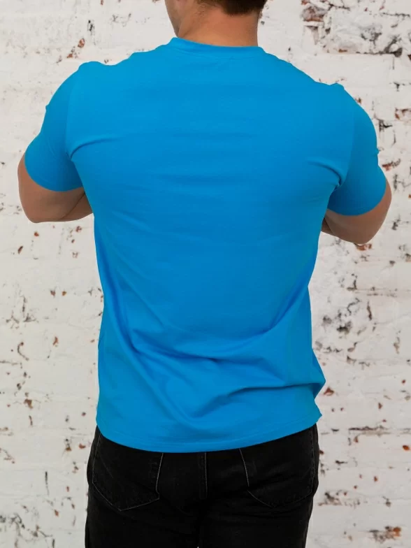 Футболка голубого цвета арт. TF21_04 поставляется в прозрачном фирменном пакете.