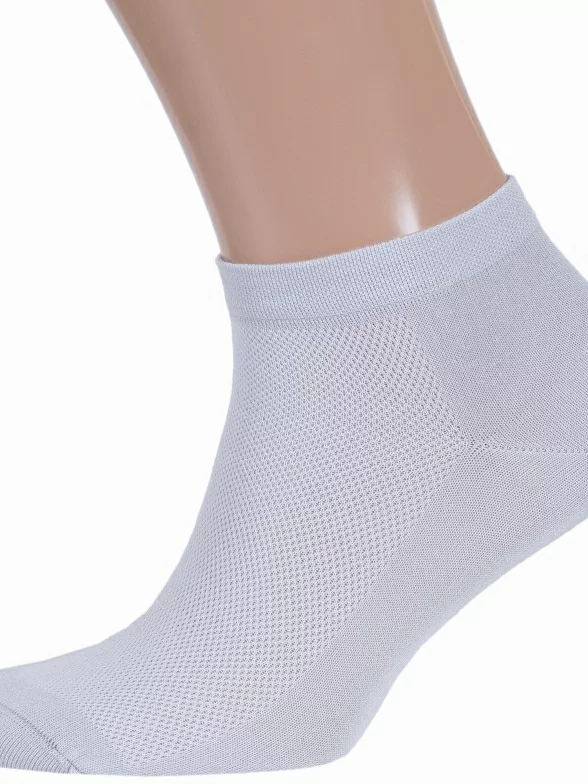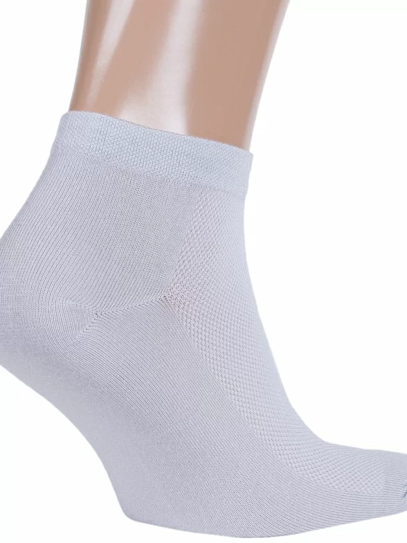 Летние короткие мужские носки, цвет светло-серый, в сеточку, спортивные, классические, шов кеттельный (бесшовная технология), принт (рисунок): однотонный, состав: 75% бамбук, 25% полиамид, арт. СП-3095. Производитель «ООО Орудьевский трикотаж, Россия» под брендом «Rusocks (орудьевский трикотаж)».