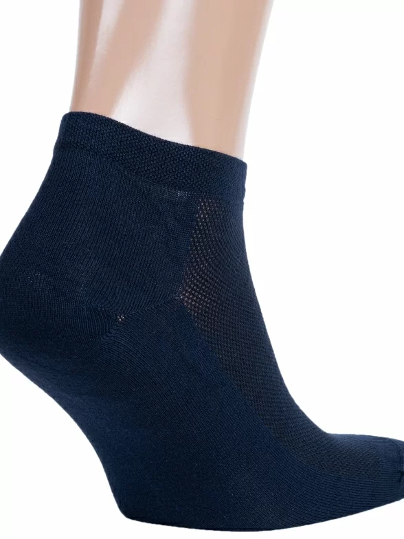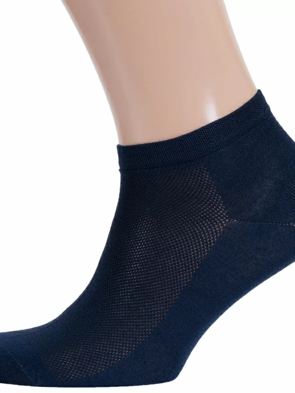 Летние короткие мужские носки, цвет темно-синий, в сеточку, спортивные, классические, шов кеттельный (бесшовная технология), принт (рисунок): однотонный, состав: 75% бамбук, 25% полиамид, арт. СП-3095. Производитель «ООО Орудьевский трикотаж, Россия» под брендом «Rusocks (орудьевский трикотаж)».