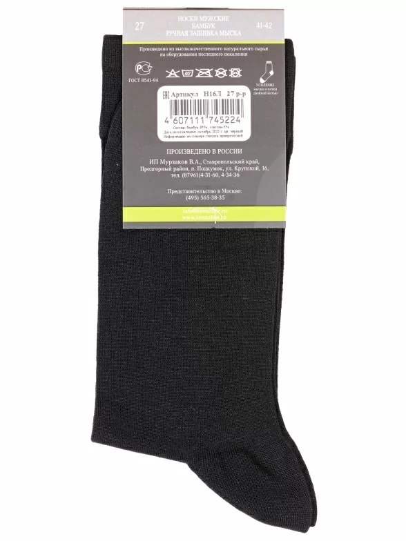 Межсезонные или летние средней длины мужские носки, цвет черный, классические, состав: 95% бамбук, 5% эластан (лайкра), арт. Н16Л. Производитель «ИП Мурзаков В.А., Ставропольский край, Россия» под брендом «Lorenzline».