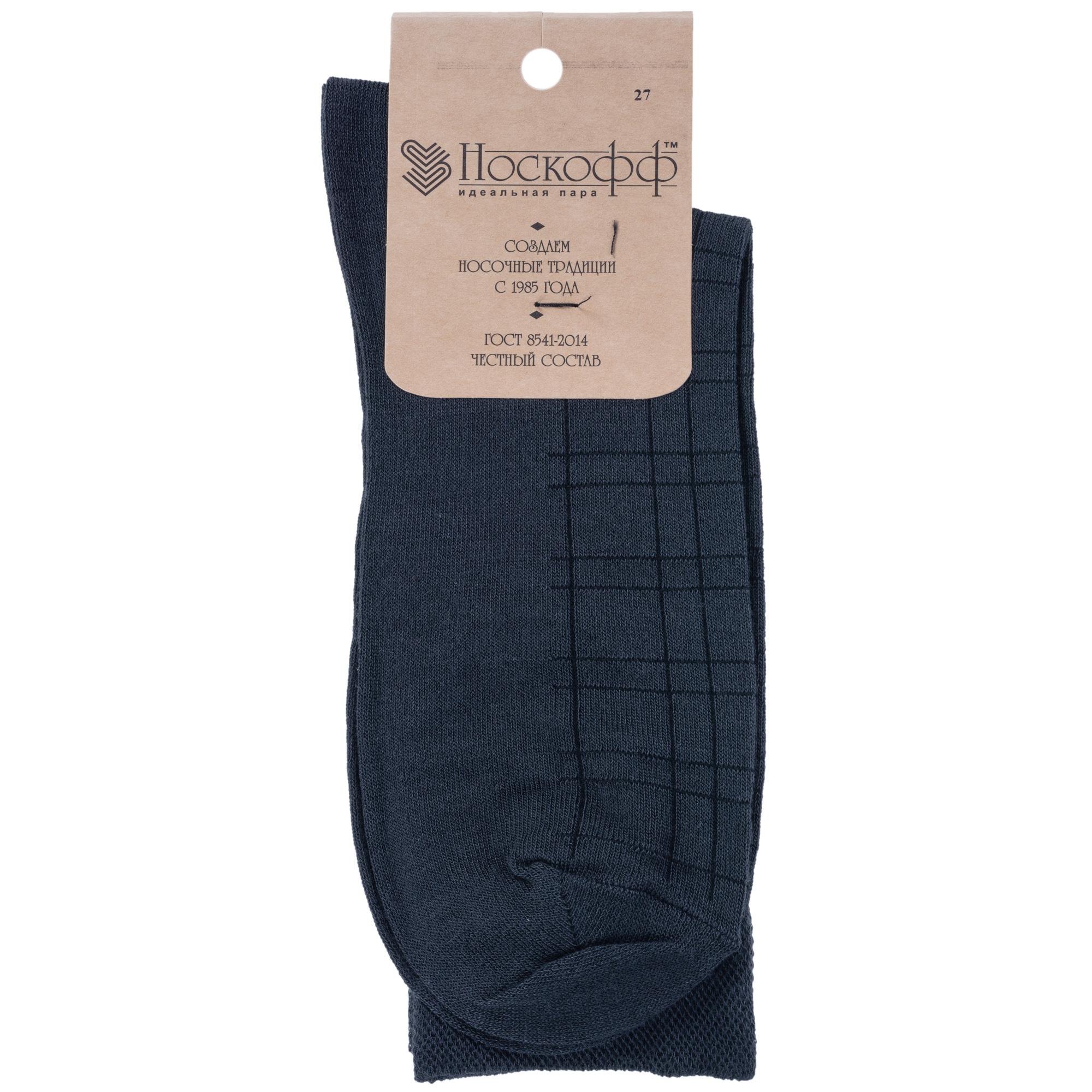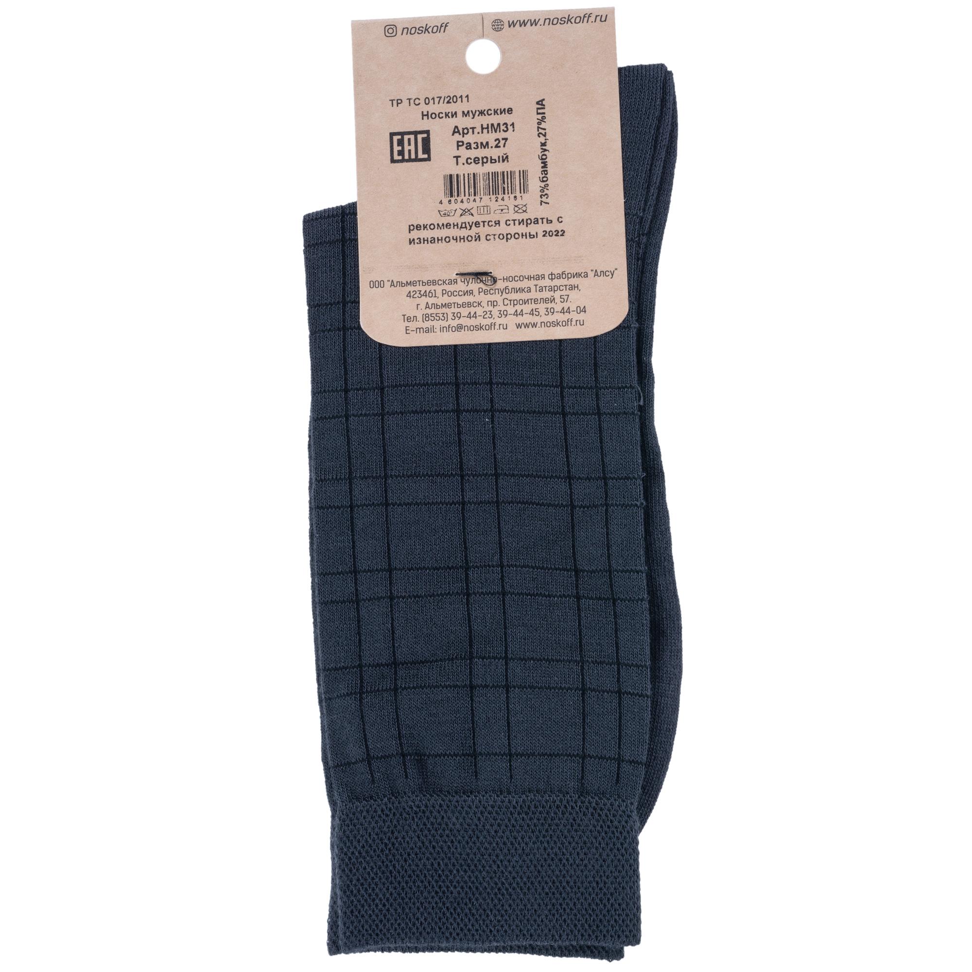 Круглогодичные или летние средней длины мужские носки, цвет темно-серый, в сеточку, классические, шов обычный (не бесшовные), принт (рисунок): клетка, с узором, однотонный, состав: 73% бамбук, 27% полиамид, арт. НМ31. Производитель «Носкофф» Россия под брендом «Носкофф (алсу)».