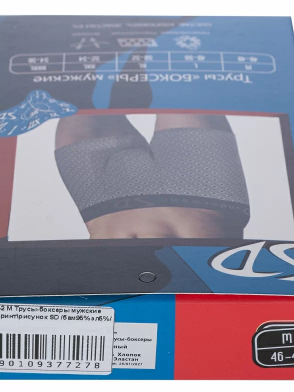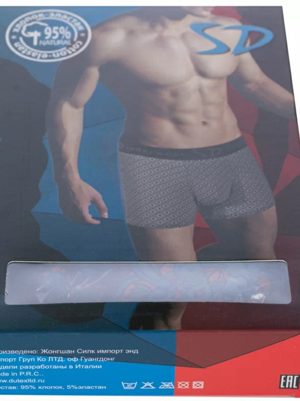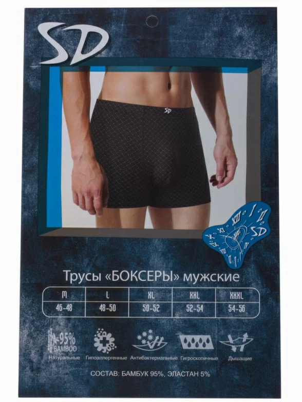 Трусы-боксеры синего цвета артикула SD2042-2 поставляются в фирменной коробке или в прозрачном пакете с этикеткой.