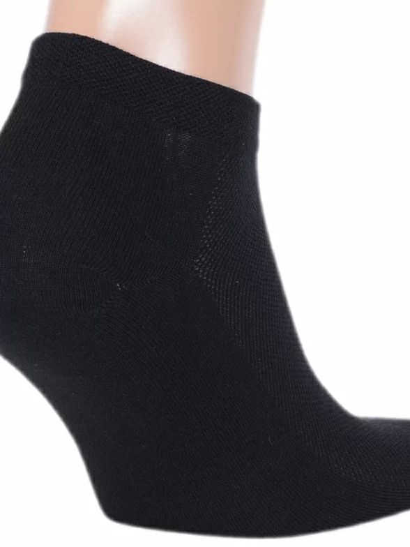 Летние короткие мужские носки, цвет черный, спортивные, классические, в сеточку, шов кеттельный (бесшовная технология), принт (рисунок): однотонный, состав: 75% бамбук, 25% полиамид, арт. СП-3095. Производитель «ООО Орудьевский трикотаж, Россия» под брендом «Rusocks (орудьевский трикотаж)».