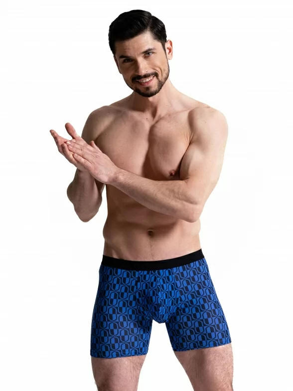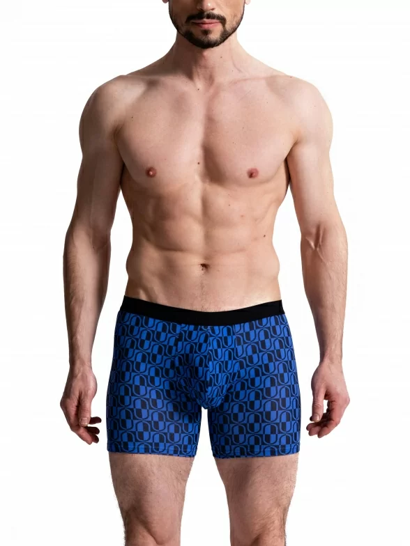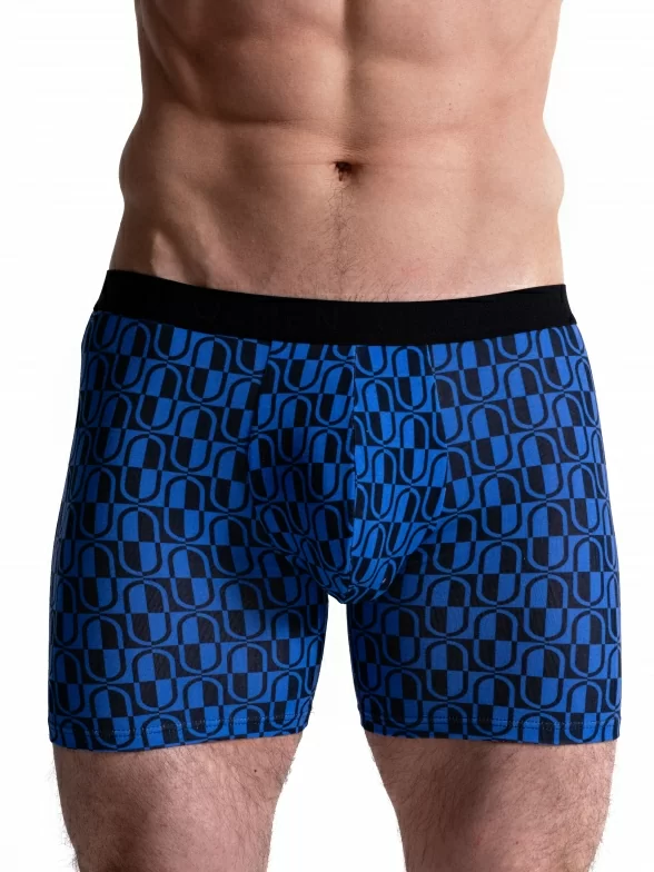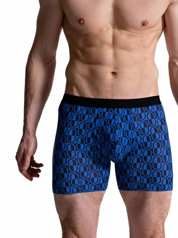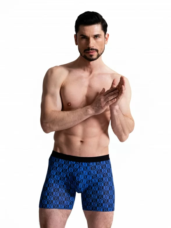 Мужские бесшовные удлиненные трусы-боксеры Oemen, MB064, рис. 064 ЧЕРНО-СИНИЕ