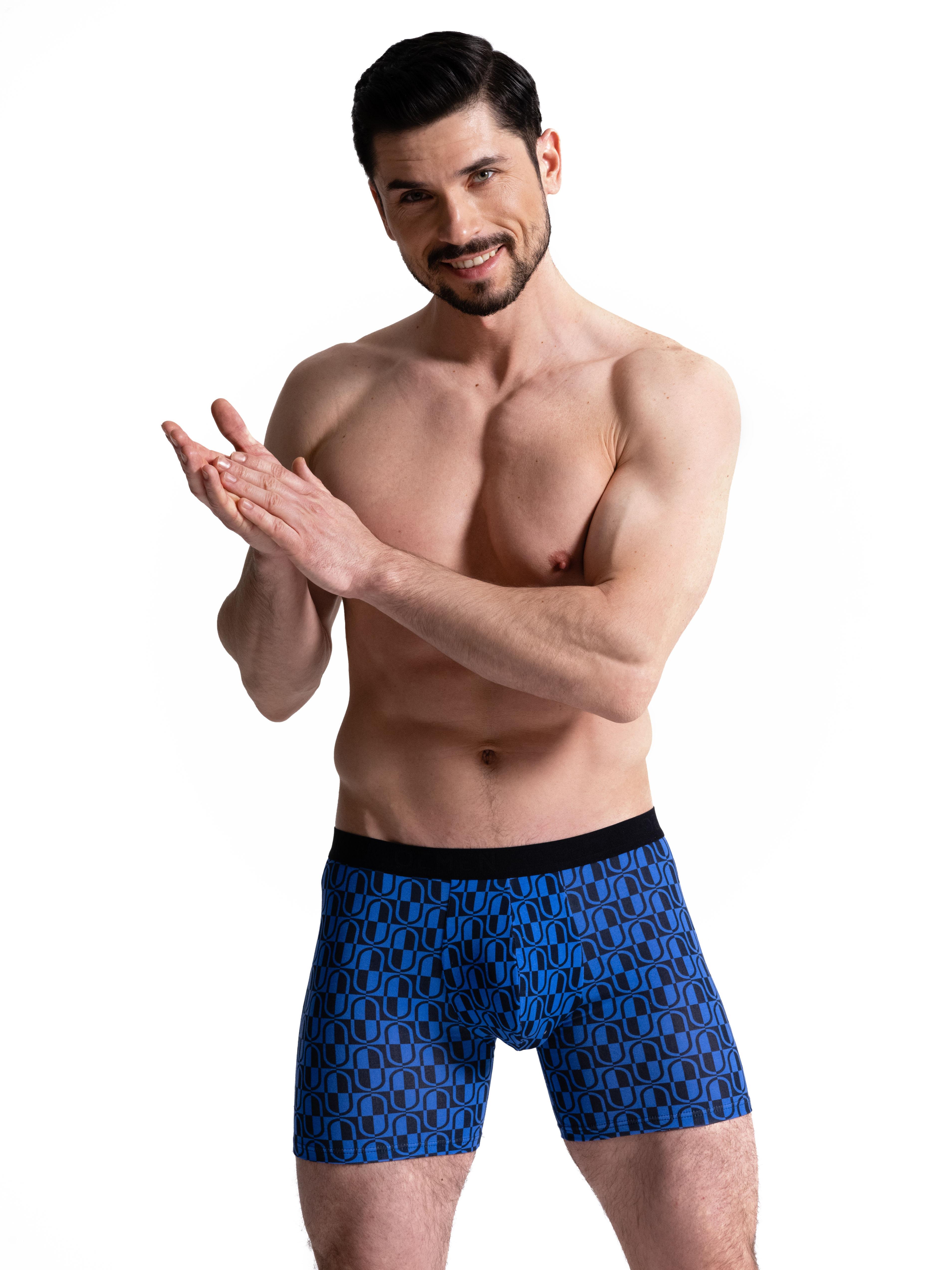 Мужские бесшовные удлиненные трусы-боксеры Oemen MB064, рис. 064 ЧЕРНО-СИНИЕ