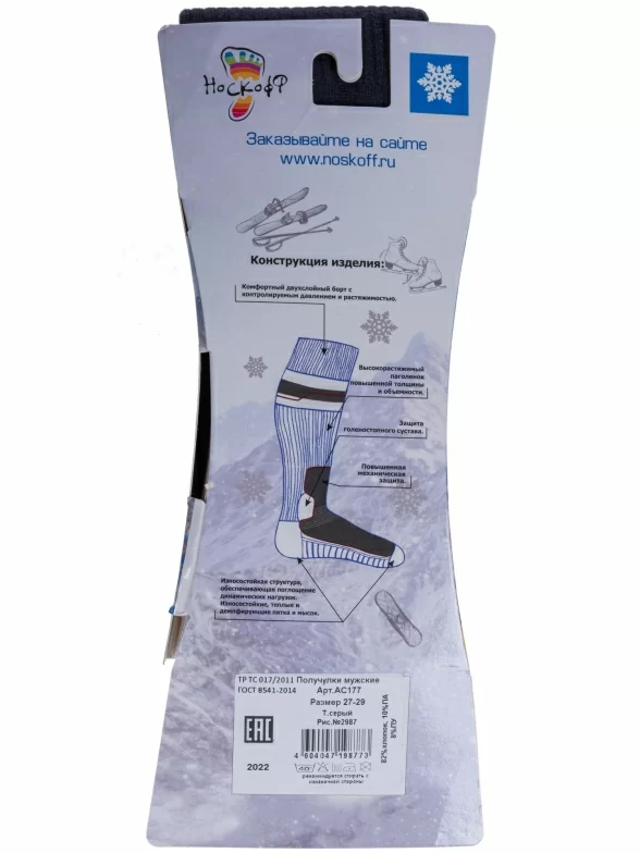 Модель длиной до колена с внутренней махрой и со связанным в рубчик паголенком, благодаря которому изделие лучше прилегает к ноге. Кроме того, у этих гольфов имеется утолщение в зоне щиколотки, а на мыске и пятке уплотненная структура с демпфирующим (амортизирующим) эффектом. Подходят для активных видов спорта и отдыха: горные лыжи, сноуборд, охота, рыбалка и прочее.