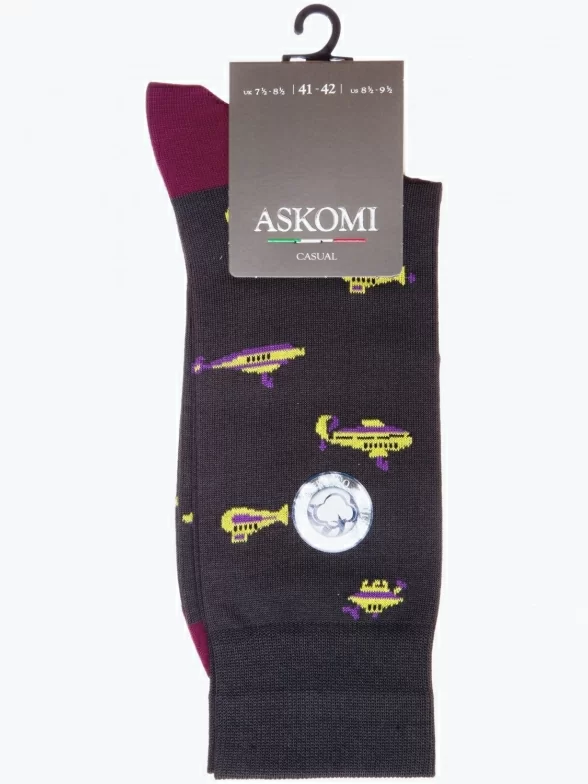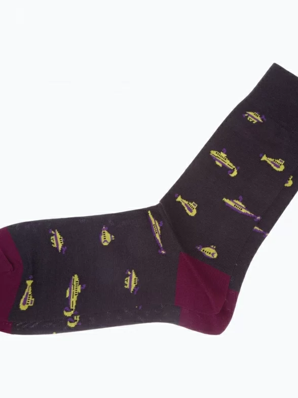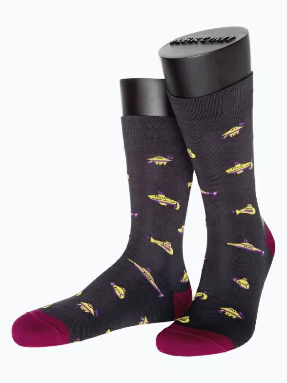Фантазийные носки, произведенные из премиального хлопка PIMA. Они оформлены ярким узором в виде подводных лодок, каждая из которых в той или иной степени похожа на знаменитую “Yellow Submarine” из одноименной песни The Beatles. Добавление полиамида придает перуанскому хлопку дополнительную износостойкость. Носки изготовлены по бесшовной технологии.