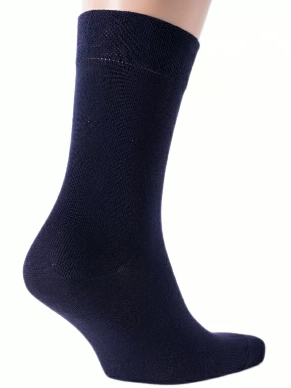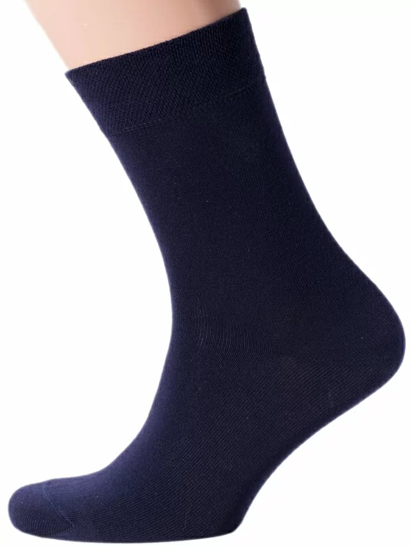 Круглогодичные средней длины мужские носки, цвет темно-синий, классические, шов кеттельный (бесшовная технология), принт (рисунок): однотонный, без рисунков/узоров, состав: 73% хлопок, 25% полиэстер, 2% эластан, арт. 14С2122. Производитель «Брестский чулочный комбинат ОАО, Беларусь» под брендом «Брестские (бчк)».