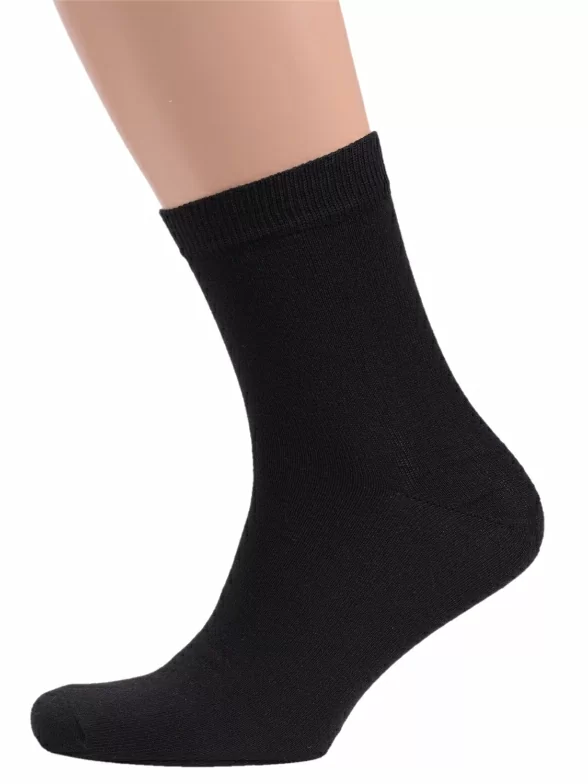 Летние или круглогодичные мужские носки, цвет черный, классические, шов обычный (не бесшовные), принт (рисунок): однотонный, без рисунков/узоров, состав: 80% хлопок, 15% полиамид, 5% эластан, арт. TL52. Производитель «ЧЕЛНЫ ТЕКСТИЛЬ» Россия под брендом «Челны текстиль».