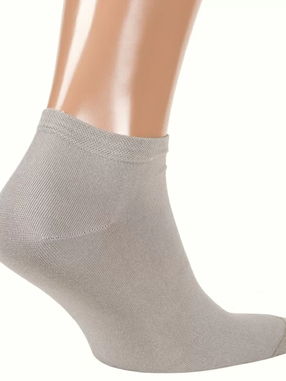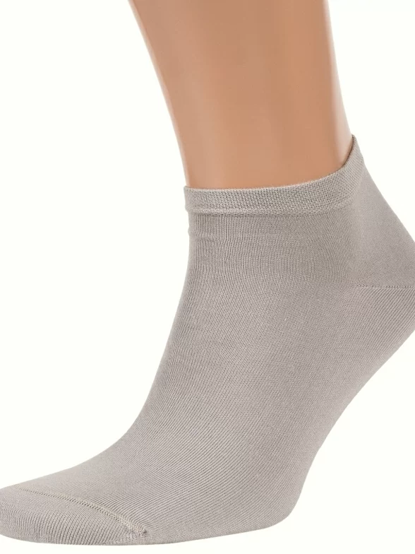 Летние короткие мужские носки, цвет бежевый, спортивные, классические, шов кеттельный (бесшовная технология), принт (рисунок): однотонный, без рисунков/узоров, состав: 75% хлопок, 25% полиамид, арт. М-2212. Производитель «ООО Орудьевский трикотаж, Россия» под брендом «Rusocks (орудьевский трикотаж)».