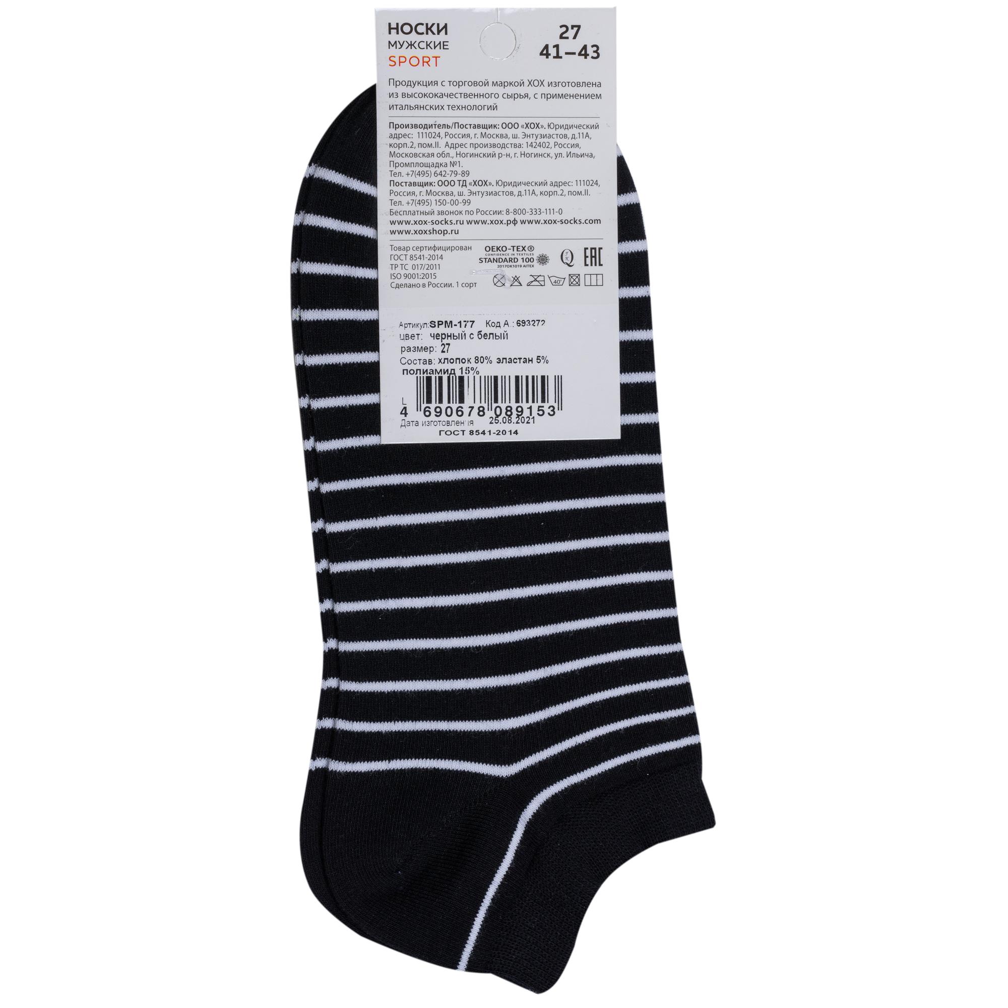 Мужские короткие спортивные носки ХОХ SPM-177, ЧЕРНО-БЕЛЫЕ