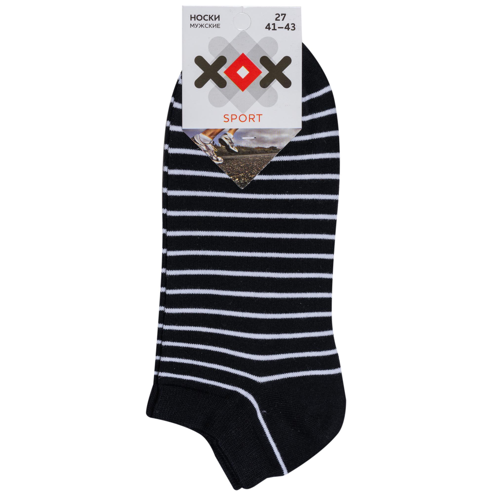 Летние короткие мужские носки, цвет черный, спортивные, классические, возможно бесшовные, принт (рисунок): полоски, с узором, состав: 80% хлопок, 15% полиамид, 5% эластан, арт. SPM-177. Производитель «ХОХ» Россия под брендом «Хох».